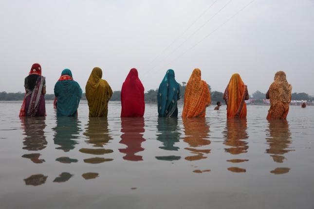 27 Ekim 2025 - Hindu kadınlar, Hindistan'ın Yeni Delhi kentinde düzenlenen Hindu dini festivali Chhath Puja sırasında Yamuna Nehri'nin sularında Güneş tanrısına tapıyor. Chhath Puja, Güneş onuruna düzenlenen 4 günlük özenli bir kutlama. Uzun bir su orucu tutmayı ve bir su kütlesinde ayakta dururken, doğan ve batan Güneş'in ışığı olan Usha ve Pratyusha'ya adaklar sunmayı içeriyor. (Bhawika Chhabra/Reuters) -