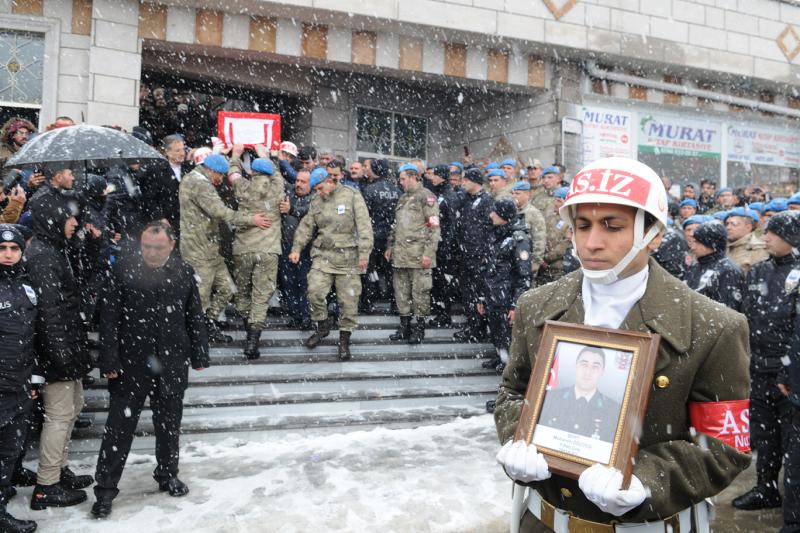 İdlib’de Suriye rejiminin hava saldırısında şehit olan 34 asker son yolculuklarına uğurlanıyor.