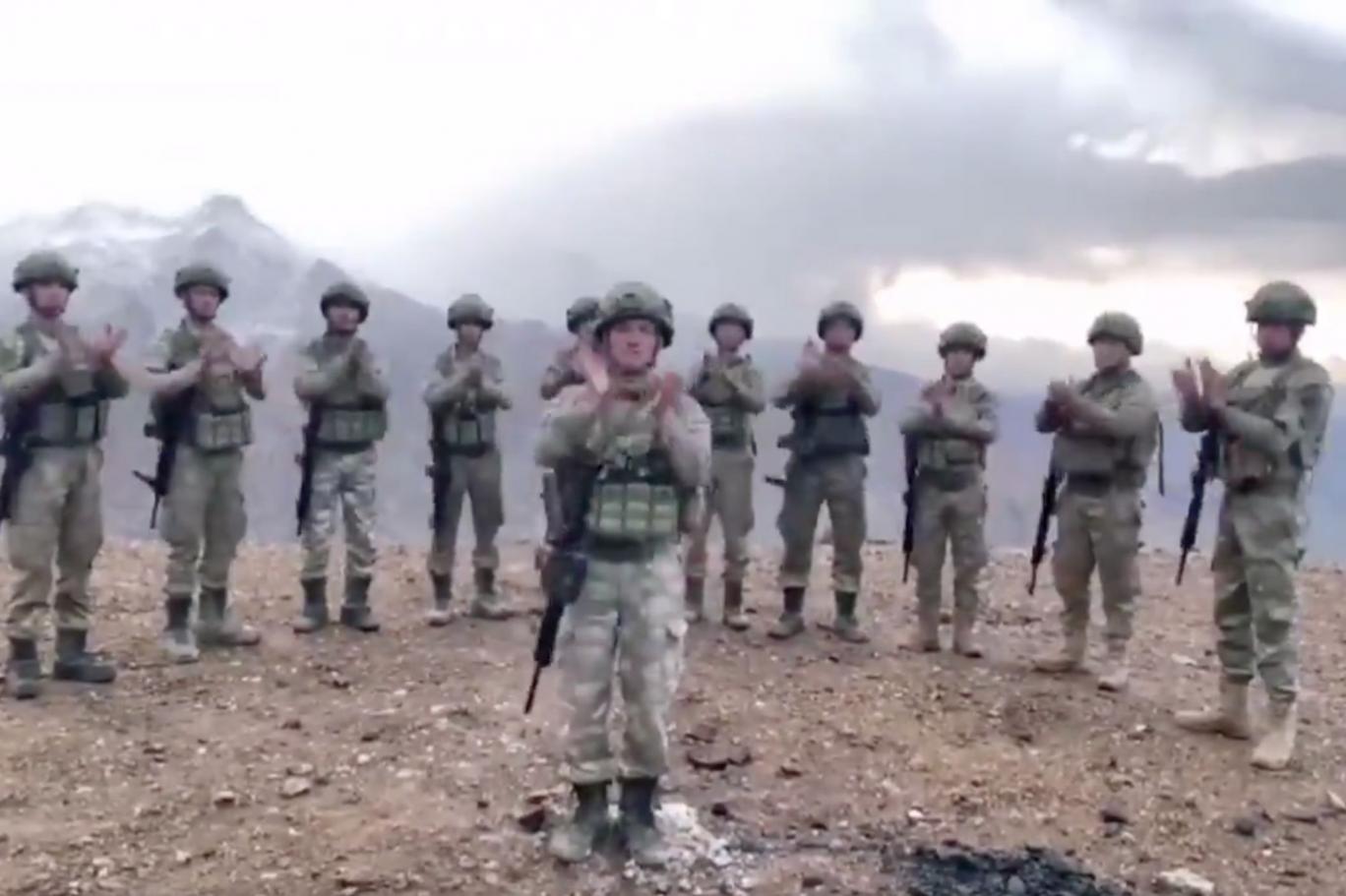 Sınırda, Hakkâri’de, Kuzey Irak’ta ve farklı pek çok noktada görev yapan Türk askerinin, sağlık personelini alkışladığı görüntüler, Bakanlık’ın sosyal medya hesabından yayınlandı.