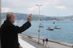 Cumhurbaşkanı Recep Tayyip Erdoğan, "29 Mayıs İstanbul Boğazı Fetih Saygı Geçişi Etkinliği" dolayısıyla İstanbul Boğazı'nda Türk bayraklarıyla kendisini selamlayan teknelere el sallayarak karşılık verdi.