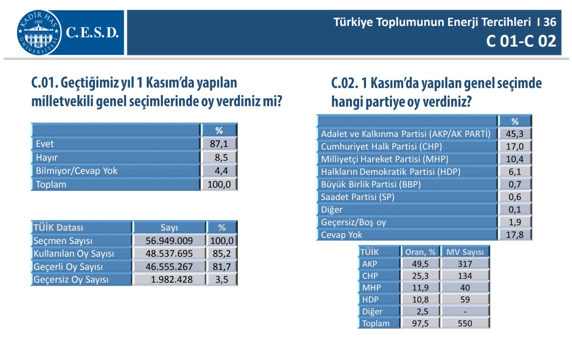 Kadir Has Üniversitesi Enerji ve Sürdürülebilir Kalkınma Uygulama ve Araştırma Merkezi (CESD) tarafından yapılan "Türkiye Toplumunun Enerji Tercihleri Araştırması”na 18 yaş ve üzeri bin 204 kişi katıldı.