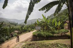 1994’te yaşanan katliamın ardından iki ayrı etnik kökene sahip komşu köyler bir arada yaşamayı yeniden öğreniyor. Bu köylerden Musambira ve Nyarubaka arasında bisiklete binen bir köylü – Fotoğraf: AFP -