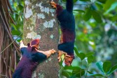 Turuncu, kızıl kahve ve mor renk tonlarındaki kürkü ve bilindik sincapların 2 katı uzunluğundaki boyuyla sincap görenleri kendine hayran bırakıyor.