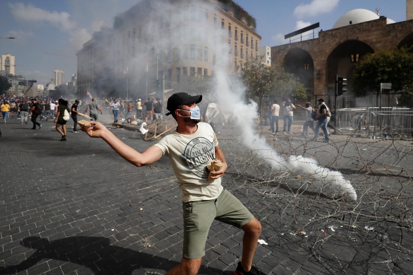 Beyrut'ta en az 158 kişinin öldüğü patlamadan dört gün sonra halk 'Şehitler Meydanı'nda toplandı. Parlamento binasına girmeye çalışan göstericilere güvenlik güçleri müdahale etti. Dışişleri ve Ekonomi Bakanlığı binasına giren protestocularla güvenlik güçleri arasında yaşanan gerginlikte 170 kişi yaralandı.