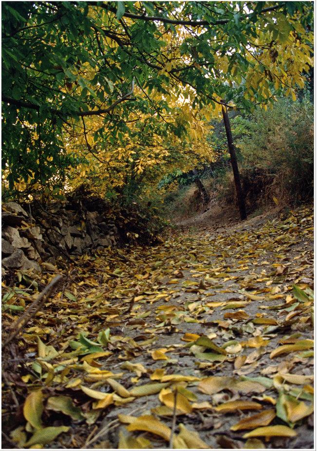 Asırlık ceviz ağaçları, çınar ve dutlar arasından yürüdüğümüzde size abartı gibi gelebilir ama gerçekten güneş yüzü görmedik. Hep gölgede, hep ağaçlar arasında yürüdük.