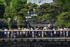 Japon halkı saatlerce sarayın çevresinde imparatoru bekledi. Yaklaşık 140 bin kişinin imparatorun ilk konuşmasını dinlemek için bölgeye gittiği belirtiliyor.