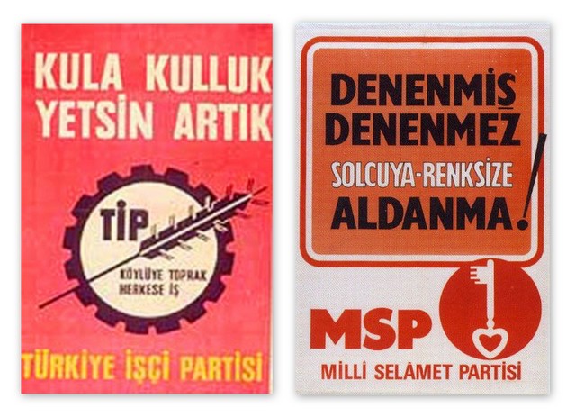 Çoğu parti bizi içeriye bile almaz, afiş vermezdi. Ama her nedense Türkiye İşçi Partisi (TİP) ve Milli Selamet Partisi'ne (MSP) ne zaman gitsek bir ya da iki adet afiş alır, mutlu olarak eve dönerdik.