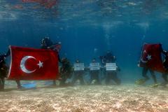 Atatürk’ün 19 Mayıs 1919’da Kurtuluş Mücadelesi’ni başlatmak üzere Samsun’a ilk adımı attığı yer olan Tütün İskelesi’nde karaya çıkışını temsil eden Türk bayrağı, asker tarafından karaya çıkarıldı.