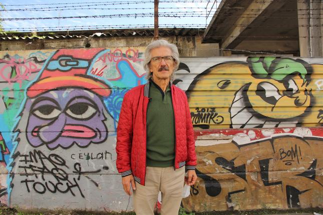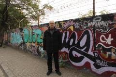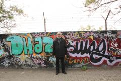 Başlarda orası perde betondu. Üzerine slogan yazılıyordu. Belediye üstünü kapatıyordu. Sağ da, sol da yazıyordu. Bu 90'lara kadar devam etti. Ondan sonra birkaç sene temiz kaldı. Ondan sonra gençler grafitiyi çizdi. Baştan başa… Pırıl pırıl gençler bunlar. Duvar gayet keyifli geliyor. Değişik değişik resimler görüyoruz. En azından bedava sergi seyrediyoruz. Caddeyi yürürken seyrediyoruz.