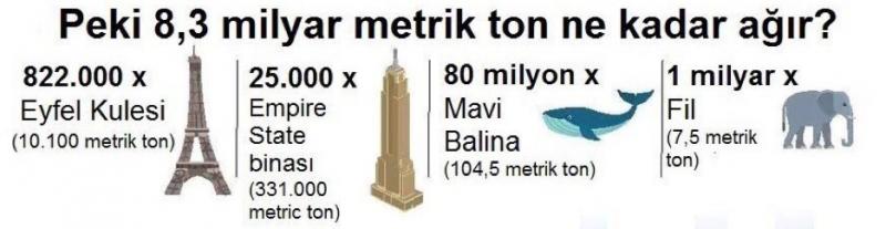 İnsanlar bugüne kadar yaklaşık 8,3 milyar metrik ton plastik ürettiler, bu miktar çelik ve çimento dışındaki tüm insan faaliyetleri materyalleri üzerinde bir miktardır (Şekil 1).