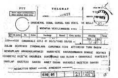Gönderilen telgrafların bir kısmında şunlar yazıyordu: