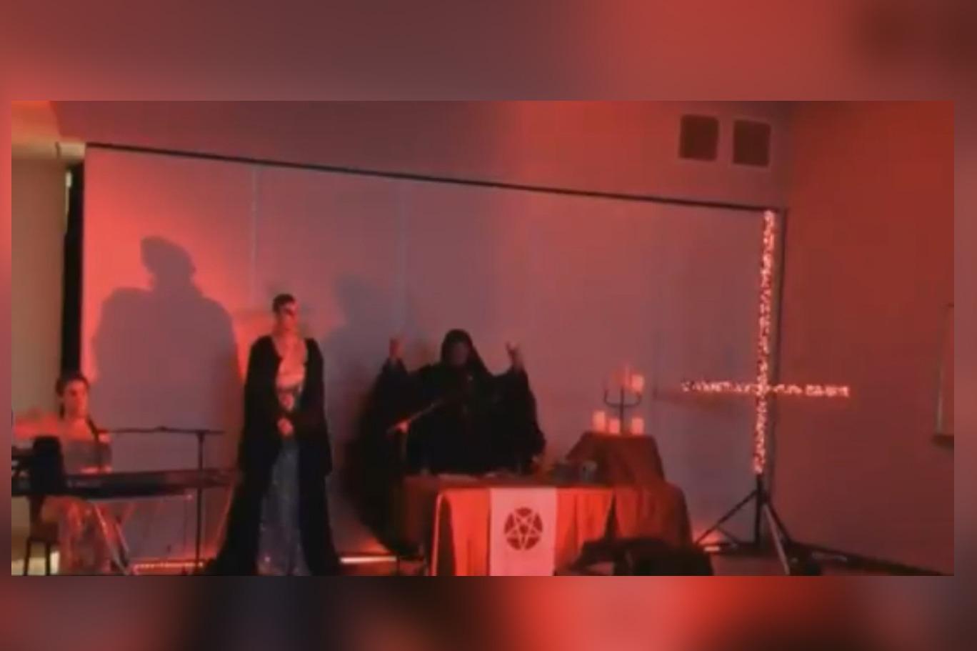 Yong'un sunumu sırasında ekranlara bir anda bir satanist ayininin görüntüleri geldi. Görüntülerde, ters dönmüş bir haçın yanında duran siyah cübbeli birinin, "Selamlar olsun, Şeytan" dediği duyuluyor.