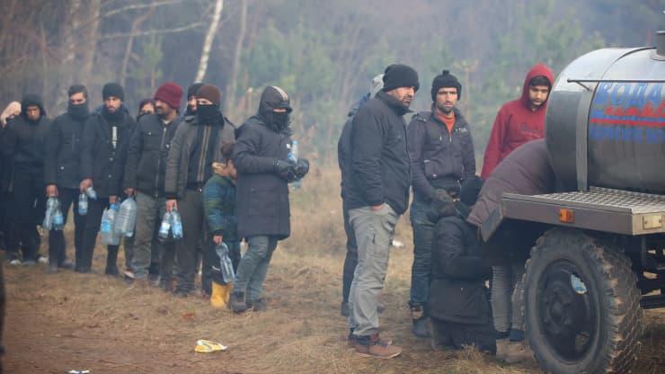 Polonya-Belarus sınırında mahsur kalmış göçmenler, tankerden dağıtılan su kuyruğunda-Kaynak-Leonid Scheglov, BelTA-Reuters.jpeg