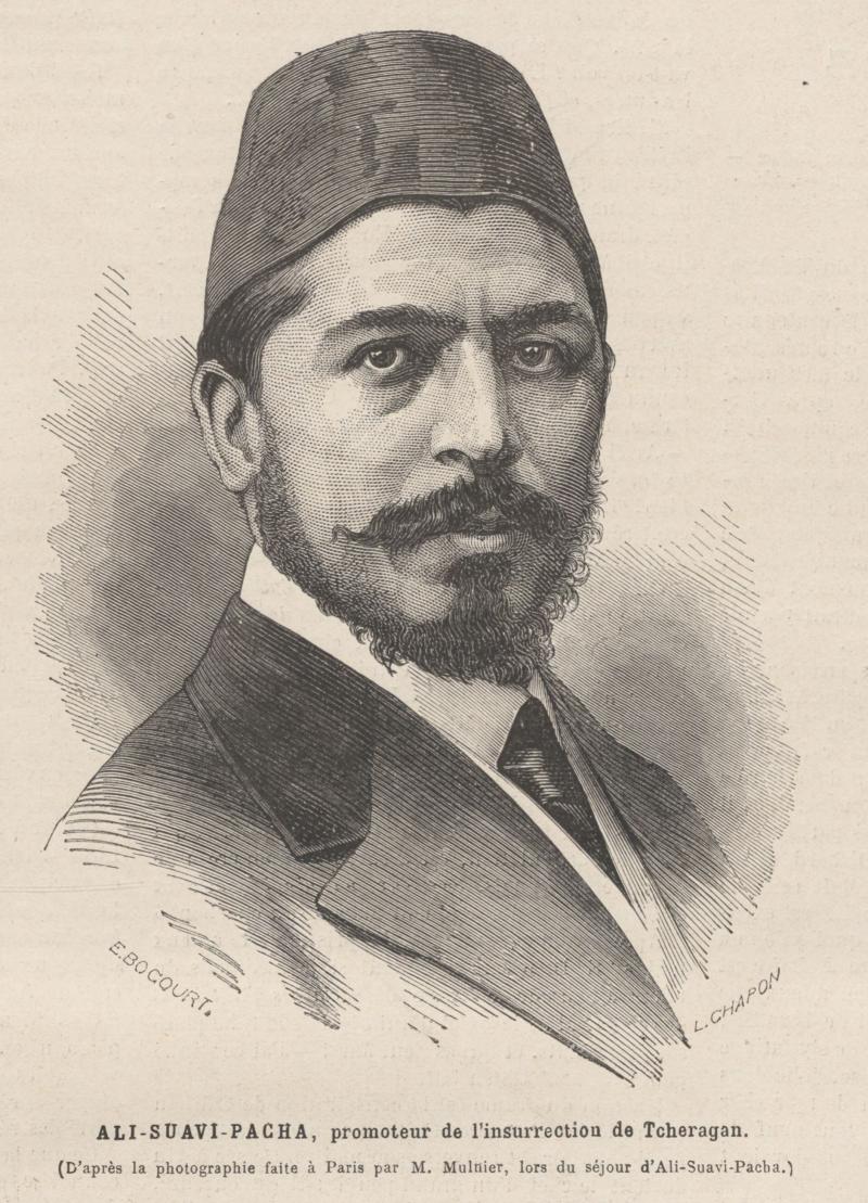 Cübbesi ve sarığıyla aykırı fikirleri ile tanınan Galatasaray Lisesi eski müdürü Ali Suavi, 93 Harbi sonrası İstanbul'da mülteci durumuna düşmüş Müslüman ahaliyi yanına alarak Çırağan Saray'ını basmış ve burada gözetim altında bulunan Sultan Beşinci Murat'ı tahta çıkarmaya teşebbüs etmiştir.