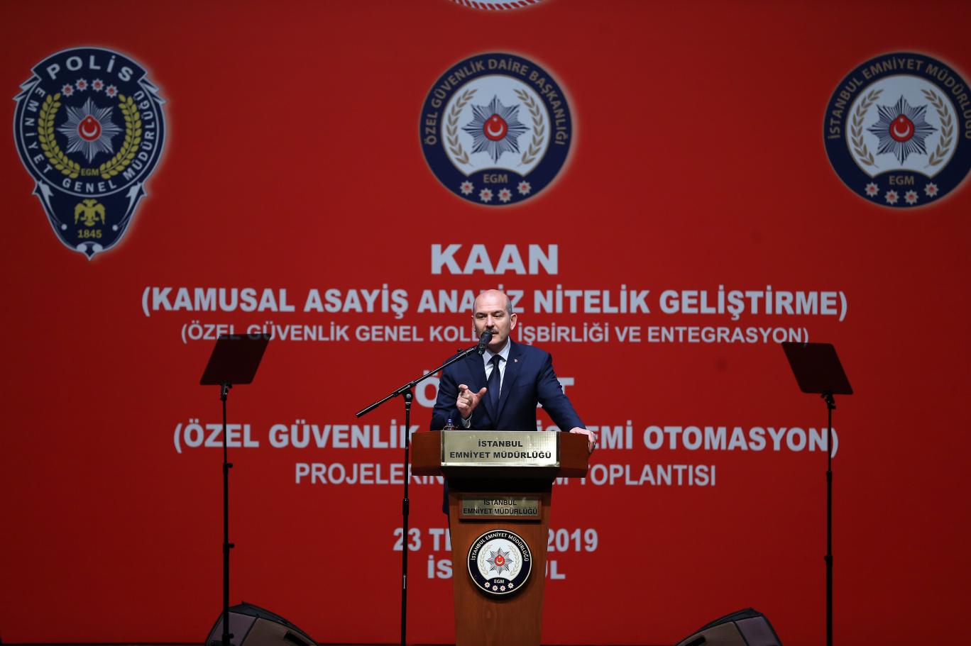 Haliç Kongre Merkezi'nde Kamusal Asayiş Analiz Nitelik Geliştirme (KAAN) ve Özel Güvenlik Bilgi Sistemi Otomasyon (ÖGNET) projelerinin açılış törenine katılan İçişleri Bakanı Süleyman Soylu, İstanbul’dan gönderilen göçmenlerle ilgili konuştu.