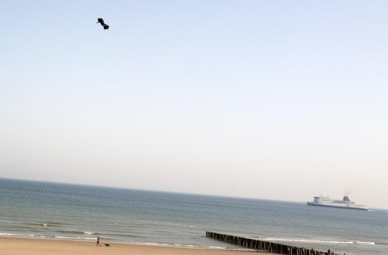 Franky Zapata takes off in his bid to cross from France to England on his flyboard. The Frenchman's attempt failed a short time later when he missed a landing platform to refuel.
