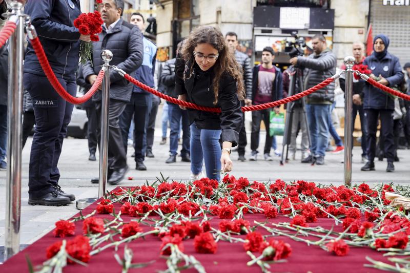 Beyoğlu Kaymakamı Mustafa Demirelli ile Beyoğlu Belediye Başkanı Haydar Ali Yıldız, patlamanın meydana geldiği İstiklal Caddesi'ndeki alana yaşamını yitirenlerin anısına karanfil bıraktı.