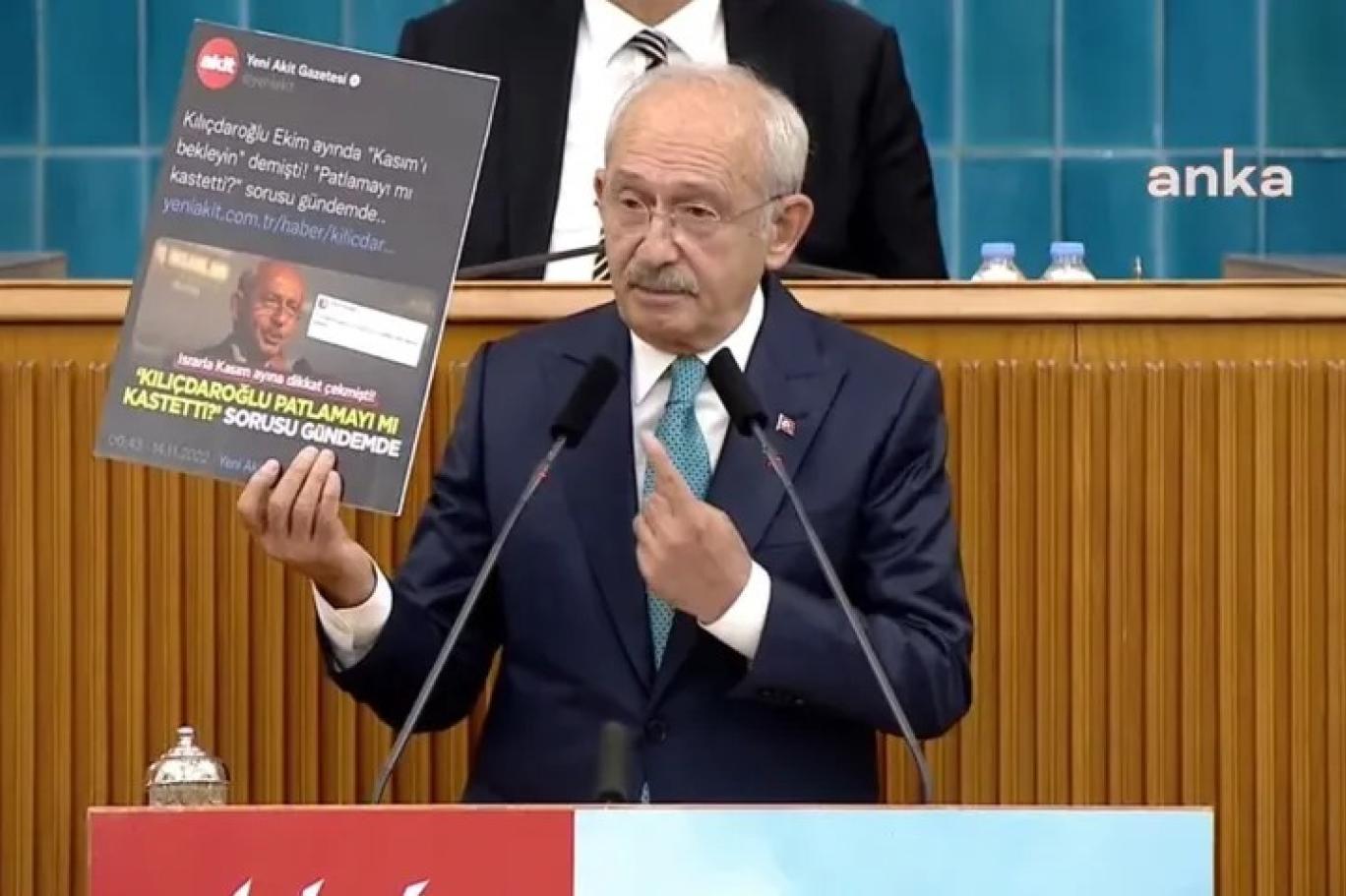 CHP Genel Başkanı Kemal Kılıçdaroğlu dünkü grup toplantısında Yeni Akit'in kendisini hedef göstermesine tepki göstermişti.