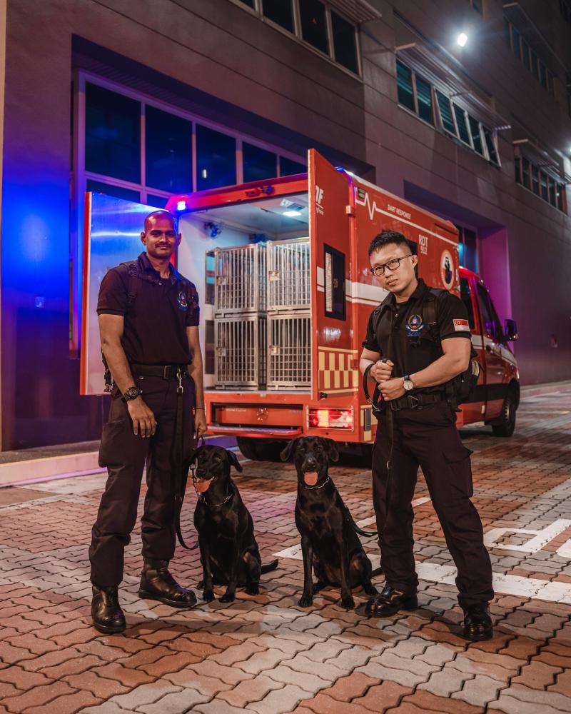 Singapur Sivil Savunma Kuvvetleri'nden gelen 68 ekibin yanında da 4 köpek var.