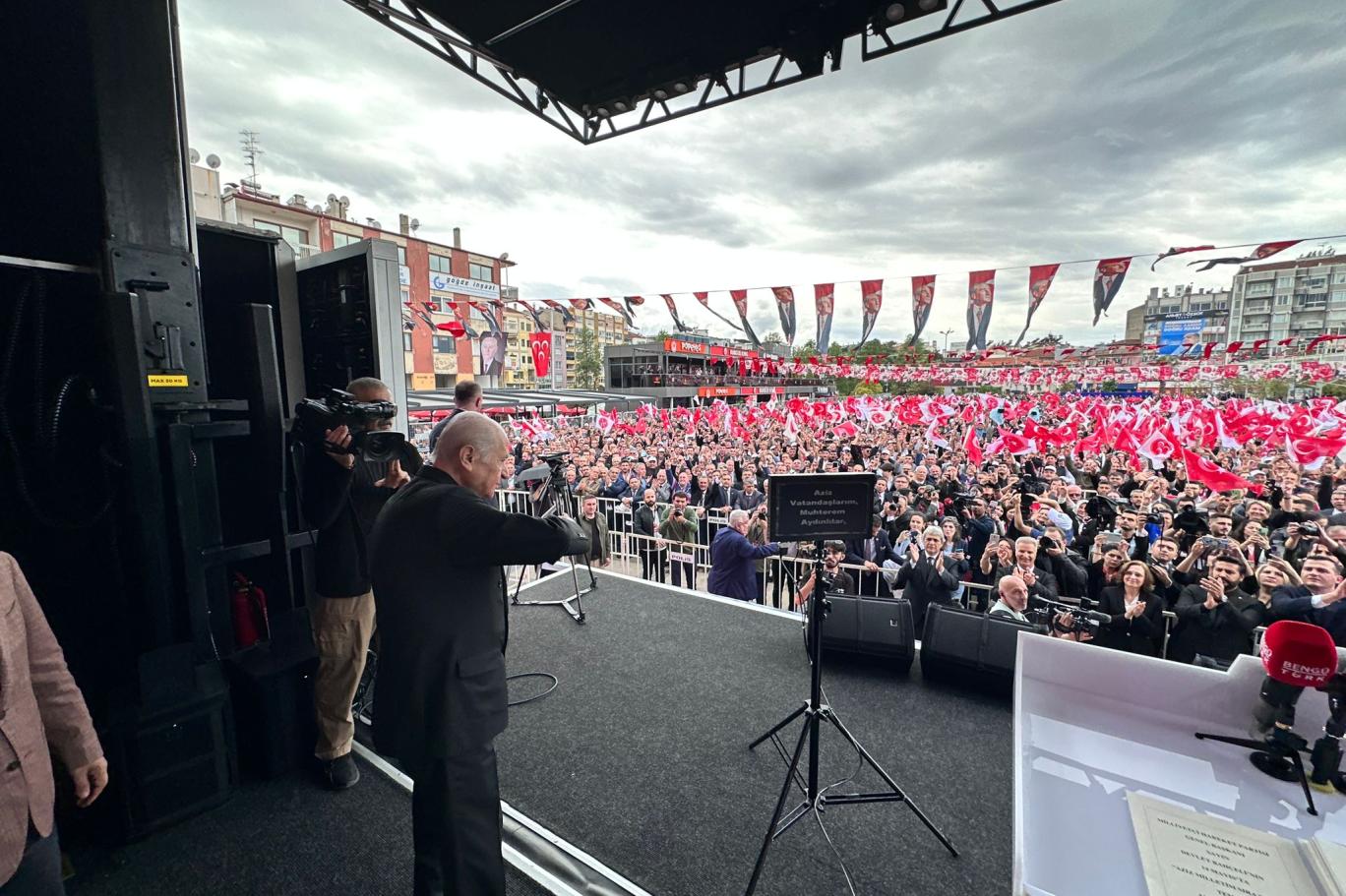 Bahçeli, Aydın’da düzenlenen “14 Mayıs’ta Aziz Milletim Sıra Sende” temalı açık hava toplantısında konuştu.