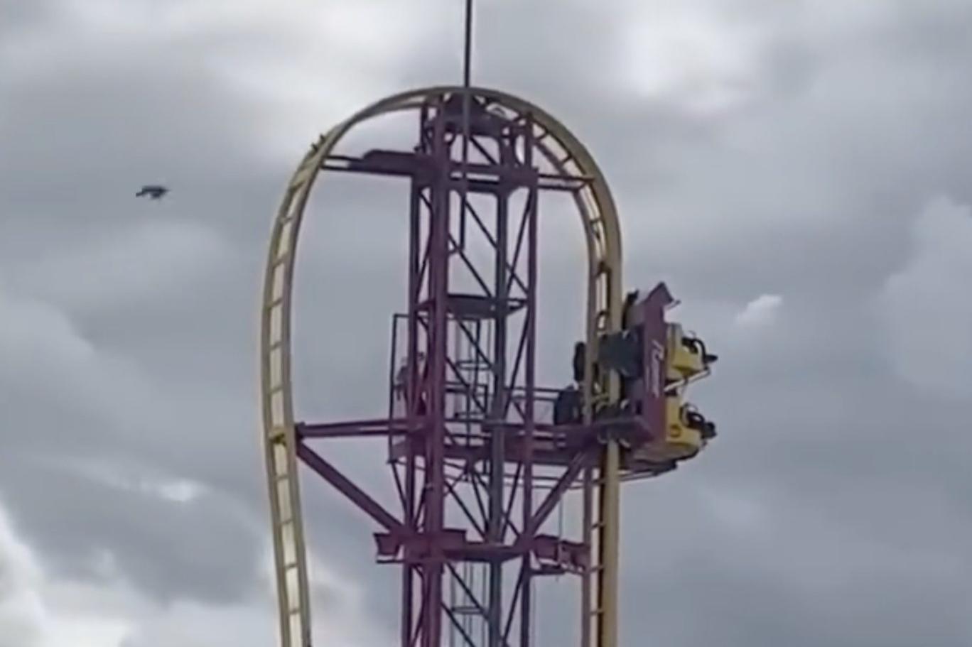 Rage Ride adlı lunapark treni, pistin 30 metrelik tırmanış kısmında bir anda arızalandı, ziyaretçiler de neredeyse 90 derece açıyla raylarda asılı kaldı.