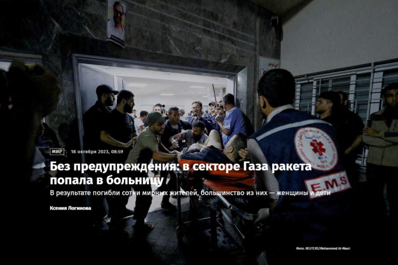 Ksenia Loginova'nın yazısında Gazze Şeridi'ndeki hastaneye İsrail'in füze saldırısına karşı Türkiye Cumhuriyeti Cumhurbaşkanı Recep Tayyip Erdoğan ve İletişim Başkanı Fahrettin Altun'un açıklamalarına da yer veriliyor.
