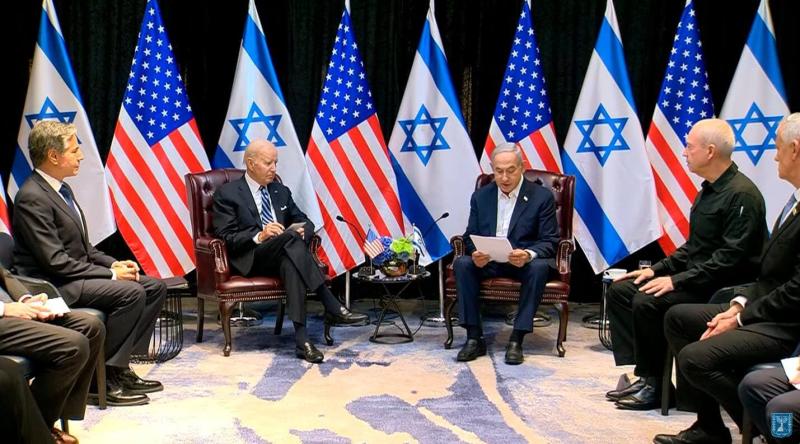 Daha önce "İnsan görünümlü hayvanlarla" savaştıkların söyleyen İsrail Savunma Bakanı Yoav Gallant'ın da, ABD Başkanı Biden ile katıldığı savaş konseyi toplantısında savaşın "uzun ve zor" olacağını söyleyip ülkesine Amerika'nın desteğini sürdürmeye çağırdığı biliniyor.