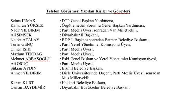 Demirtaş’ın tutuklu olduğu dosyaya yasa dışı yollarla elde edilmiş telefon dinlemeleri eklenmiş ve bu telefon görüşmelerini yaptığı yasal parti görevlileri, terörist olarak gösterilmiştir.