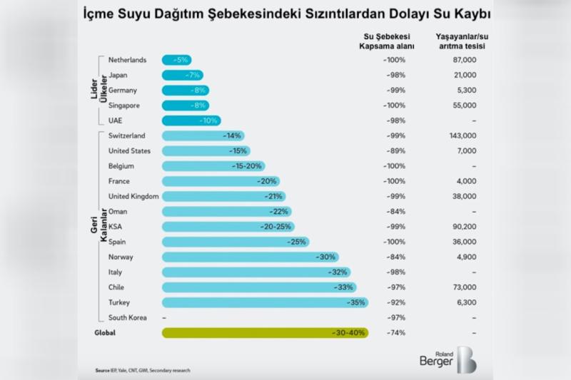 AB'de ortalama yüzde 24, ABD'de yüzde 12-15, Avustralya'da ise yüzde 10 su kaçağı bulunuyor.