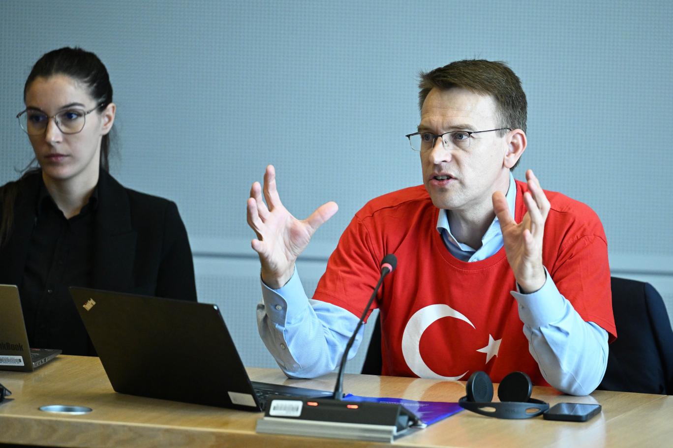 Gazetecileri Türk bayraklı tişörtü ile karşılayan Stano, Türkçe selamlayarak Türkiye'yi çok sevdiğini söyledi.