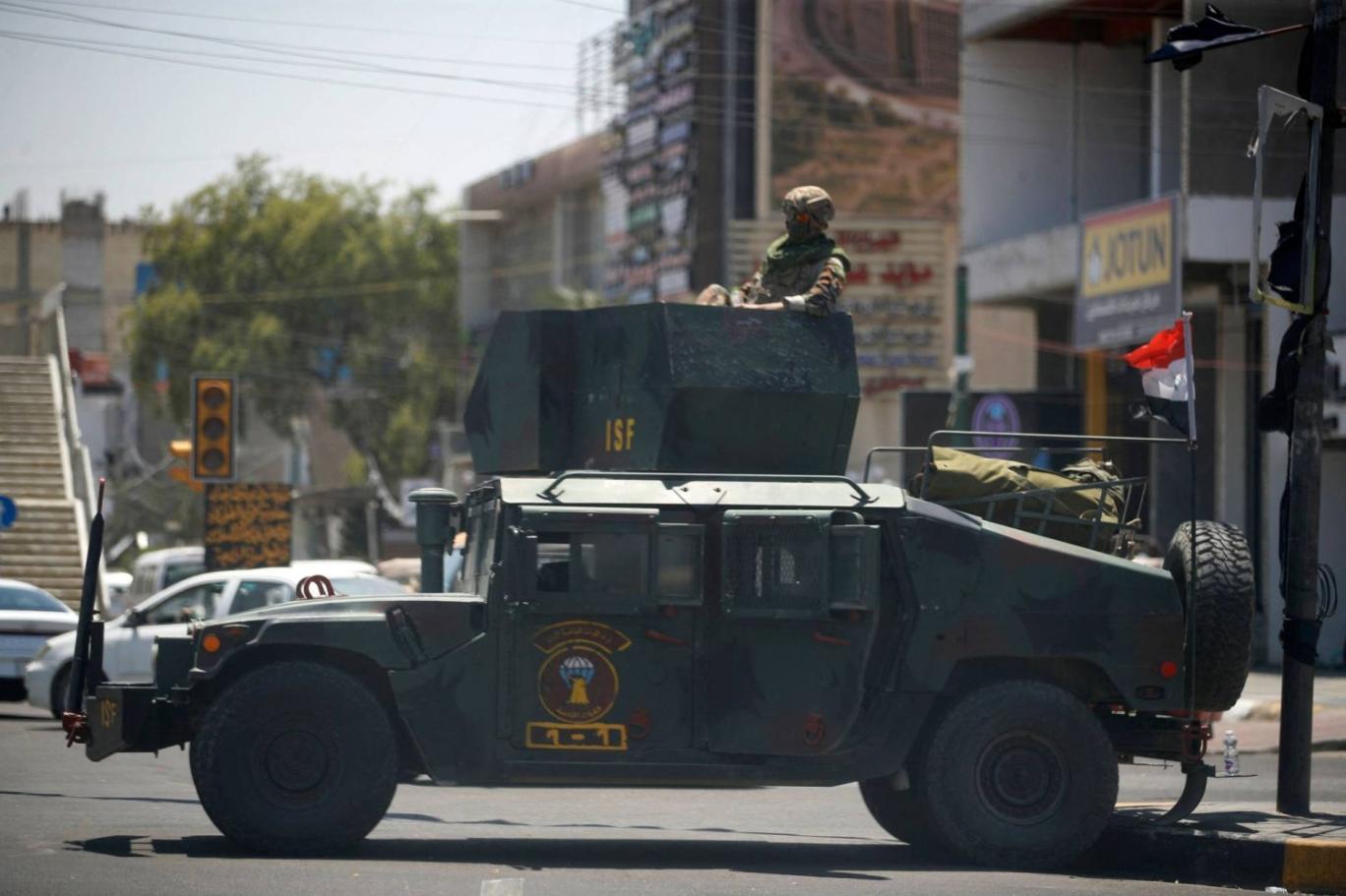 Irak İçişleri Bakanlığı'na ait zırhlı bir araç, Amerikan restoranlarına yapılan saldırıların ardından Bağdat'ın doğusundaki Filistin Caddesi'nde konuşlandırıldı / Fotoğraf: AFP