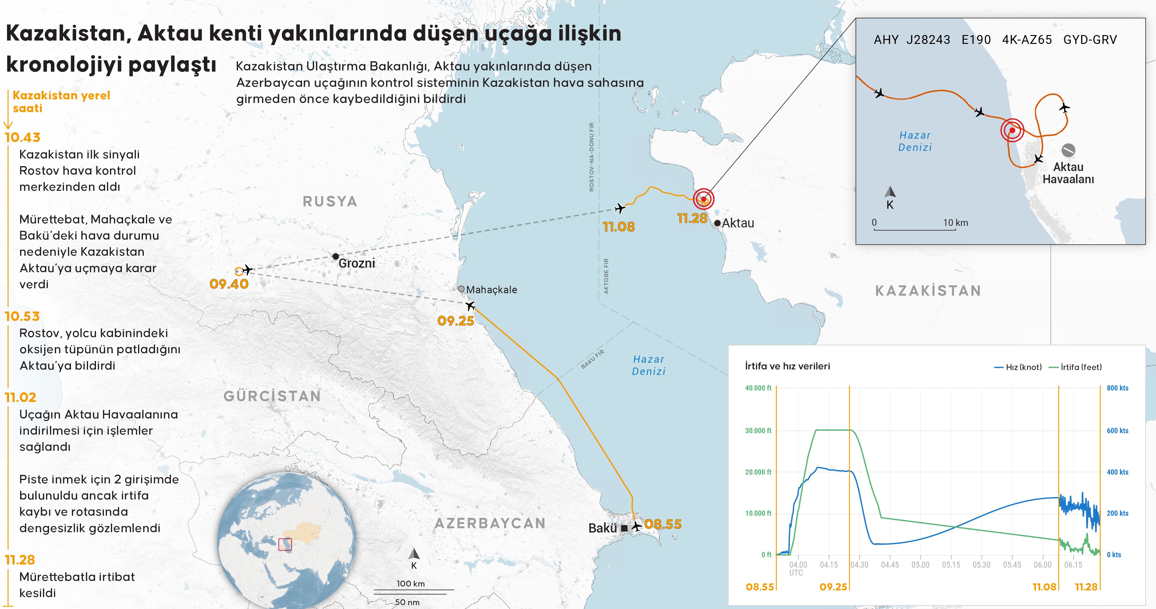 Son olarak Kazakistan Ulaştırma Bakanı Marat Karabayev kazanın kronolojisini paylaştı.