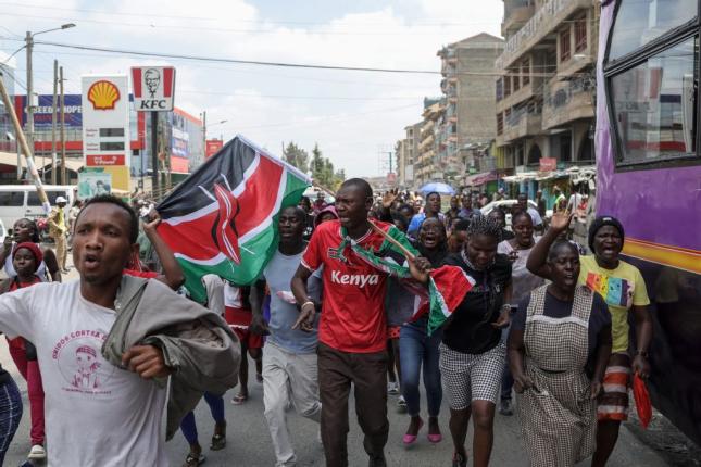 15 Ekim 20205 - Kenya muhalefet lideri Raila Odinga'nın Hindistan'a yaptığı sağlık ziyareti sırasında 80 yaşında hayatını kaybetmesinin ardından Nairobi'nin Jacaranda mahallesi sokaklarında yas tutanlar Kenya bayrakları taşıdı. En son 2022'de olmak üzere 5 kez başarısız bir şekilde cumhurbaşkanlığı için yarışan Odinga, Kenya siyasetinin daimi muhalefet figürüydü. Son haftalarda Odinga'nın sağlığının kötüye gittiğiyle ilgili birtakım iddialar dolaşıyordu. Ancak hem ailesi hem de müttefikleri, Odinga'nın ağır hasta olduğu iddialarını reddediyordu. Yıllarca Kenya siyasetinin merkezinde bulunan Odinga, bir dönem başbakanlık koltuğuna oturdu. Özellikle batıdaki Luos ve başkent Nairobi'de tabanının desteğini hiç kaybetmeyen Odinga, zaman zaman eski düşmanlarıyla ittifaklar da kurdu. Rakipleriyle birlikte çalışabilme kabiliyeti nedeniyle Odinga'ya Luo dilinde "Agwambo" (gizemli kişi) lakabı takılmıştı. (Tony Karumba/AFP) -