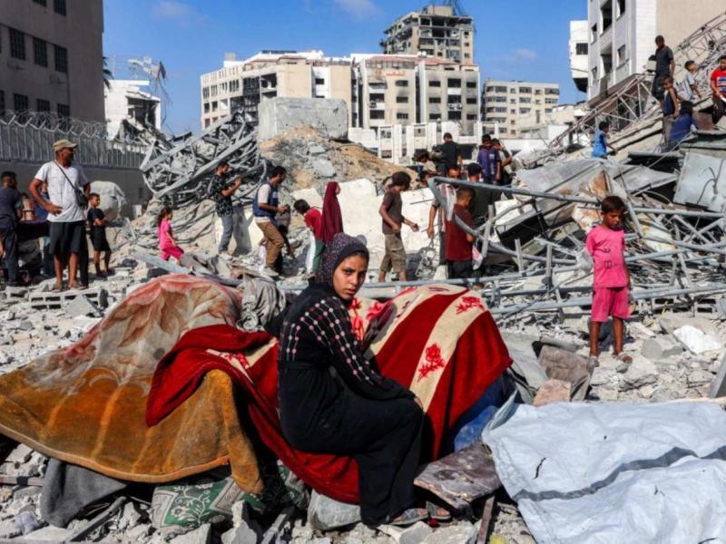 6 Ekim 2025 - Gazze Şeridi'nin merkezindeki Bureij mülteci kampında, yıkılmış binaların yanında, yerinden edilmiş Filistinli çocuklar, yemek pişirmek için yakıt olarak kullanılabilecek eşyaları bulmak için çöp yığınlarını arıyor. İsrail'in iki yıldır yürüttüğü soykırımda 20 bin çocuğun hayatını kaybettiği düşünülüyor (Eyad Baba/AFP) -