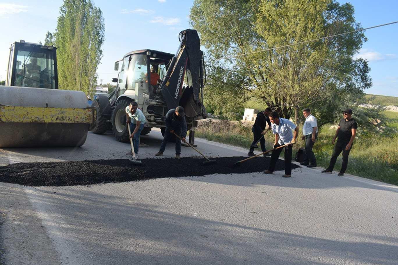 Belediyeye bağlı taşeron bir firma asfalt çalışması yapıyor.