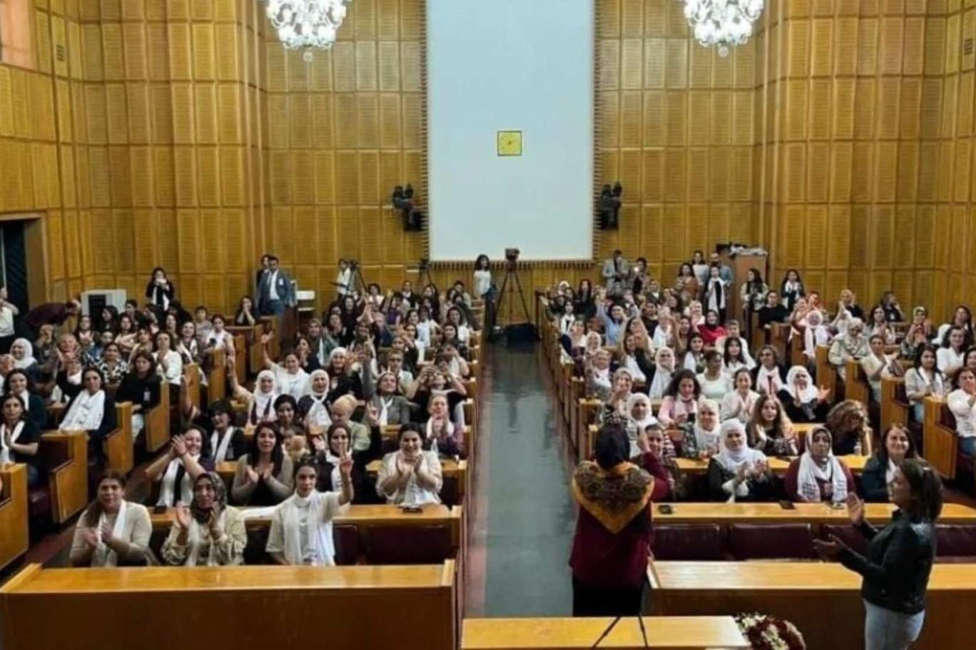 İşte bu sözlerin ardından salonda bulunan DEM Partililer ve Diyarbakır'dan Ankara'ya "umut hakkı" için yürüyen DEM Partili kadınlar, hep bir ağızdan "Biji Serok Apo" (Yaşasın Başkan Apo) ve "Jin Jiyan Azadi" sloganları attı.
