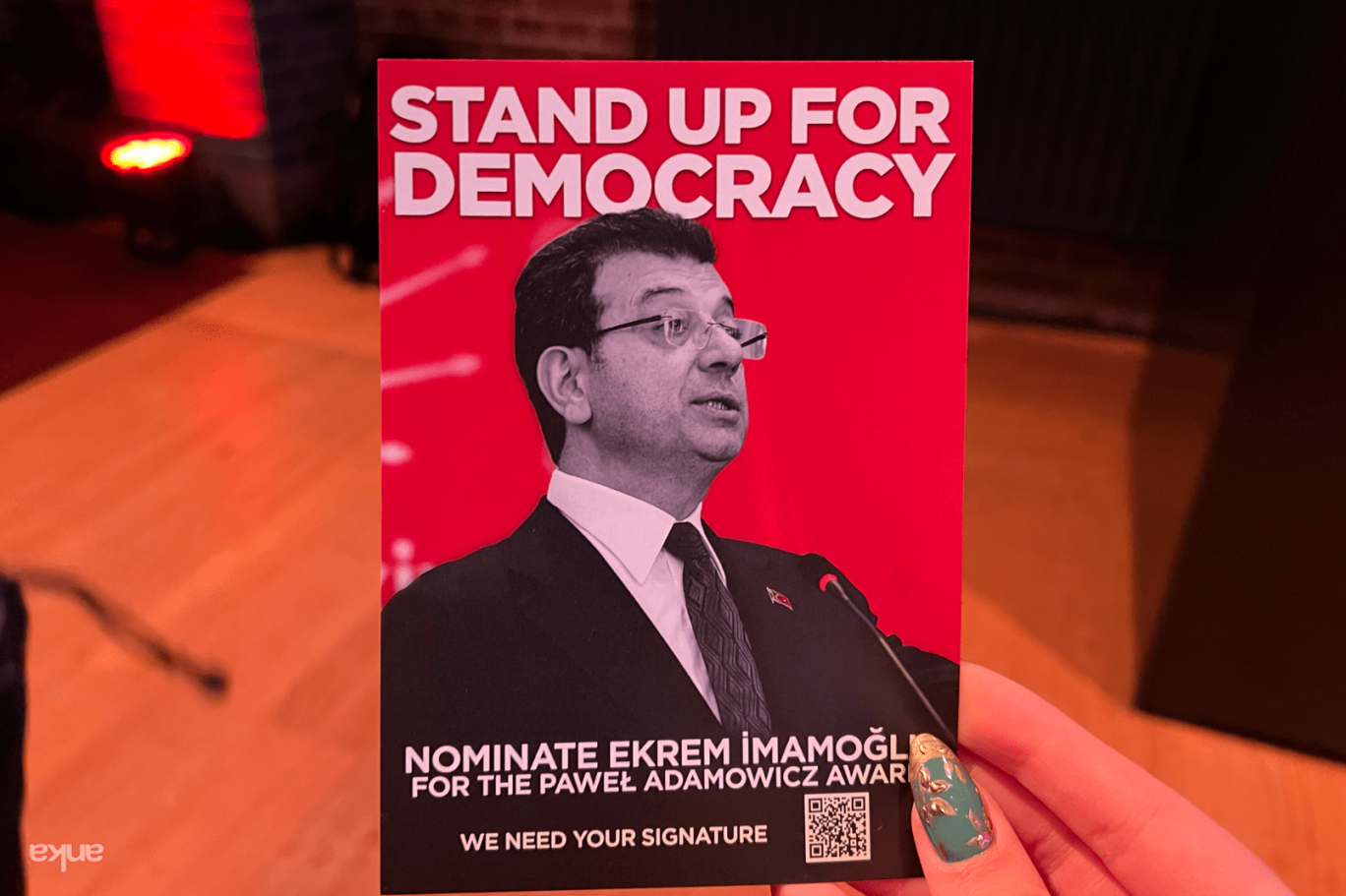 Bölgeler Komitesi'nin PES Grubu, Ekrem İmamoğlu'nu; cesareti, özgürlükleri, dayanışmayı ve eşitliği savunan yerel liderlere verilen Paweł Adamowicz Ödülü’ne aday göstermiş, birçok grup da İmamoğlu'na desteğini açıklamıştı. Karacsony’nin konuşmasının ardından panelin moderatörlüğünü yapan Avrupa Parlamentosu’ndan Celine Hervieu, İmamoğlu’nun adaylı kampanyası için hazırlanan broşürünü havaya kaldırarak PES delegasyonun adaylığa desteği için kürsüden çağrı yaptı.