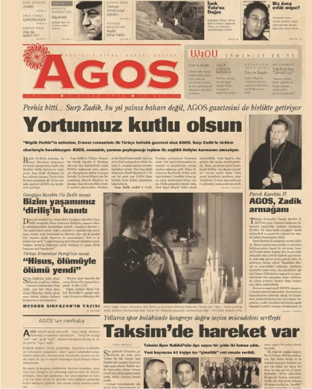 Takvimler 5 Nisan 1996’yı gösterdiğinde, bir Paskalya haftasında, İstanbul’un basın hayatına mütevazı ama sarsıcı bir ses eklendi. İsmini Rupen Maşoyan’ın önerisiyle gençlerin seçtiği, "sabanın suda açtığı ark" anlamına gelen Agos, Hrant Dink’in öncülüğünde menziline doğru akmaya başladı. Bugün, aradan geçen 30 yılın ardından Agos, yine bir Paskalya haftasında hem yeni yaşını hem de dijitalle harmanlanan yenilenmiş yüzünü kutlamaya hazırlanıyor.