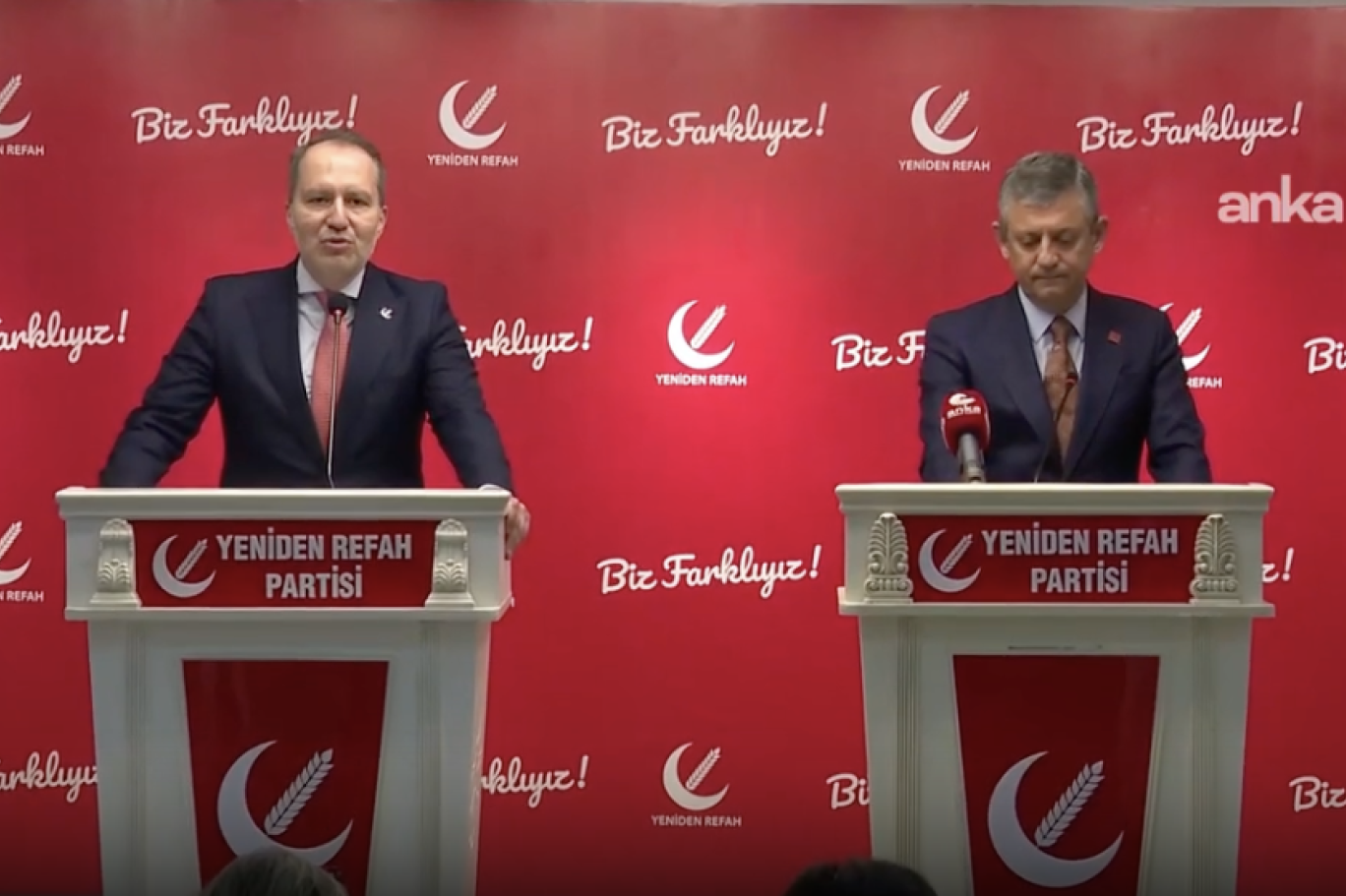 Büyük bir savaşla karşı karşıyayız. Bölgemizde, dünyada etkileri var ama ülkemize de özellikle ekonomik anlamda ciddi olumsuz etkileri oluyor. Bu olumsuz etkilerin azaltılmasında da en büyük görev dediğim gibi hükümete düşüyor. Tabii diğer bir konu Sayın Genel Başkanın ifade ettiği gibi siyasi etik kanunuyla ilgili yaklaşımlarıydı. Bunlarla ilgili bize gerçekten de önemli hazırlıklar, çalışmalar dosya halinde sundular. Kendilerine teşekkür ediyoruz. Tabii siyasette, ahlakın, etiğin, şeffaflığın hakim olması gerektiğini milli görüş olarak, Yeniden Refah Partisi olarak yıllardan beri ifade ediyoruz. Önce ahlak ve maneviyat anlayışıyla yola çıkan bir hareket olarak siyasi etikle ilgili yaklaşımların, çıkarılacak yasaların elbette ki destekçisi olacağımızı ifade etmek isterim. Diğer bir konu da yine kendilerinin de ifade ettiği gibi ara seçim gündemiyle ilgili bir müzakerede bulunuldu. Bununla ilgili olarak da Anayasa'mızın 78'inci maddesindeki açık hüküm dolayısıyla şu anda parlamentoda eksik bulunan sekiz milletvekilliği için bir ara seçimin yapılması anayasal bir gereklilik olarak ortaya çıkmaktadır diye kendileri bir çalışmayı sundular ve bu noktada bir görüş beyan ettiler. Bununla ilgili de karşılıklı bir fikir alışverişinde ve müzakerede bulunduk. İnşallah bu ziyaretin hayırlı sonuçlara vesile olmasını diliyorum. Sayın misafirimize, Genel Başkan'a ve kıymetli heyetine bir kez daha bu nazik ziyaretleri ve sunmuş oldukları çalışmalar dolayısıyla teşekkürlerimi sunuyorum. Hayırlı olsun."
