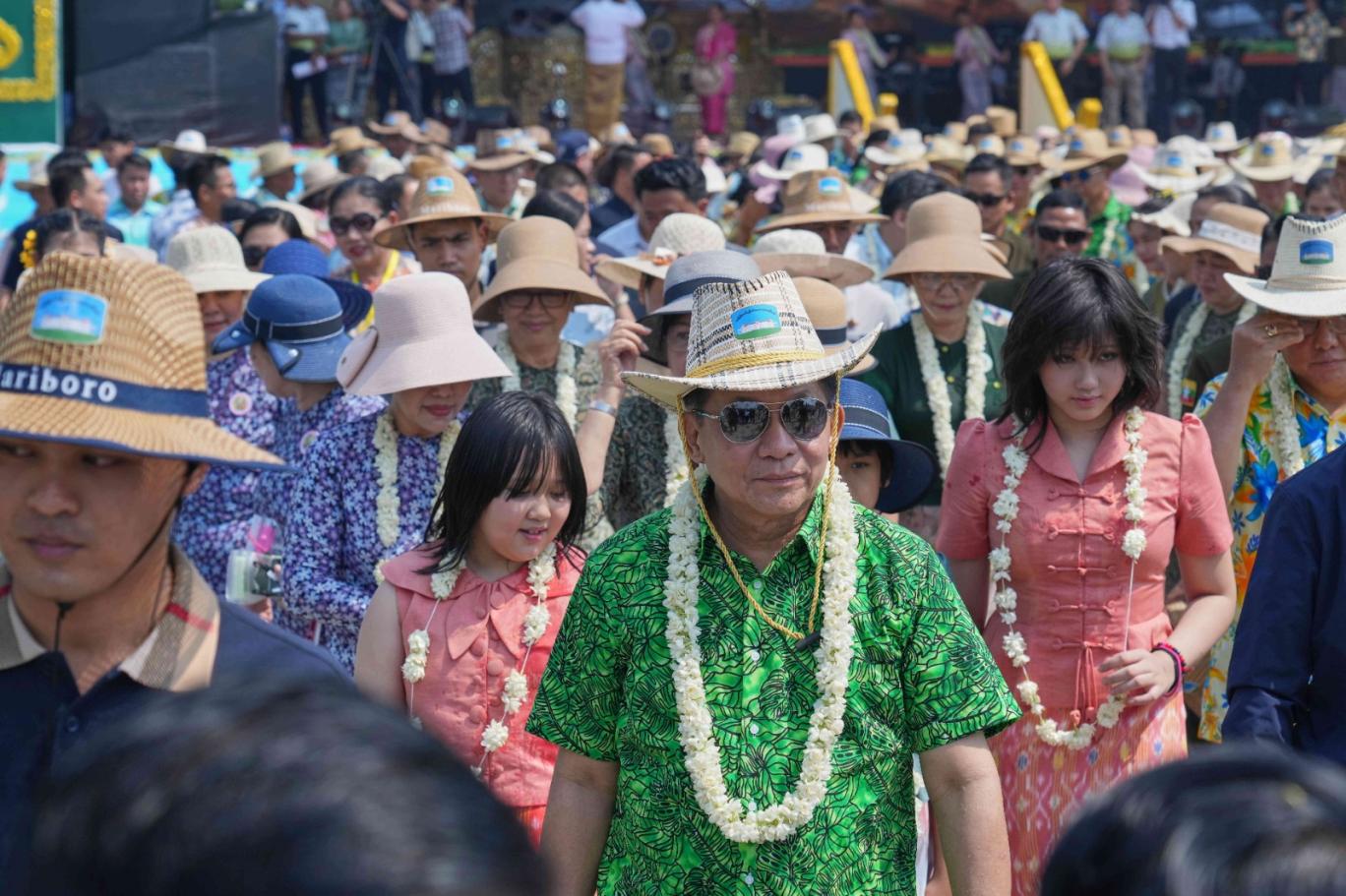 Myanmar'ın yeni cumhurbaşkanı Min Aung Hlaing (ortada), Nepido'da düzenlenen geleneksel su festivalinin açılış törenine katılıyor (AP)