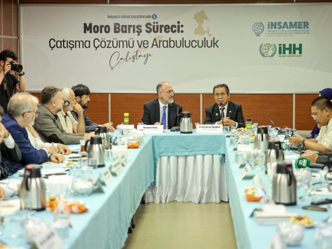 Haber İstanbul'da "Moro Barış Süreci: Çatışma Çözümü ve Arabuluculuk" çalıştayı düzenlendi Çalıştay; İnsan Hak ve Hürriyetleri (İHH) İnsani Yardım Vakfı ile İnsani ve Sosyal Araştırmalar Merkezi (İNSAMER) işbirliğinde gerçekleştirildi Çatışma ortamından barış inşasına: Filipinler-Moro örneği İHH çalıştayı raporu: Barış süreci zorunluluklarla değil, samimi bir iradeyle yürütülmeli Bahçeli'den barış süreci mesajı: Barış tek kanatlı bir kuş değildir