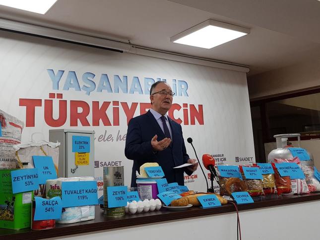 Siyaset Saadet Partisi, halkın enflasyonunu ürünler üzerinden anlattı: Temel ihtiyaçlarda en az yüzde 70 Saadet Partisi Genel Başkan Yardımcısı Şerafettin Kılıç, zorunlu temel tüketim maddelerinin fiyatlarında yaşanan artışları, sergilediği çeşit çeşit ürünler üzerinden açıkladı Steve Hanke: Türkiye'de hiperenflasyon ihtimalinin imkansız olduğunu söyleyemem ancak istatistiksel açıdan oldukça düşük TÜSİAD Başkanı Kaslowski: Bunlar doğru adımlar ise neden enflasyon bu denli şiddetli yükseliyor? Gıda enflasyonu yüzde 47'yi aştı