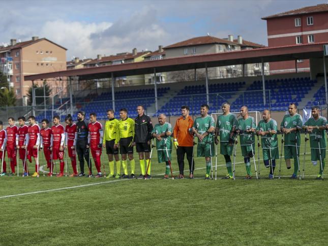 Spor Ampute futbolda Türkiye-Azerbaycan dostluğu Türk Silahlı Kuvvetleri (TSK) Rehabilitasyon Merkezi Engelliler Spor Kulübü Ampute Futbol Takımı ile Azerbaycan'ın Karabağ Gaziler Ampute Futbol Takımı, dostluk maçında karşı karşıya geldi