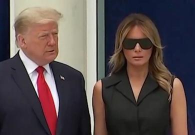 ÇEVİRİ Dünya First Lady Melania Trump, eşinin fotoğrafçılara gülümsemesi isteğine yüz buruşturarak karşılık verdi