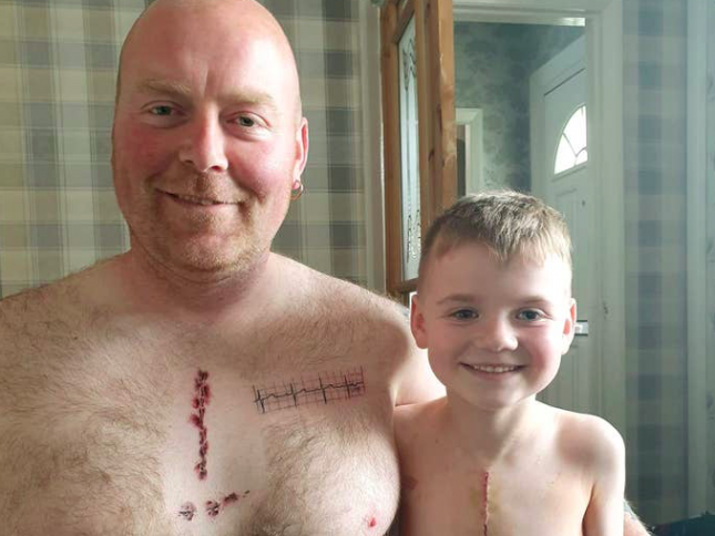 Kalp ameliyatı geçiren oğluna destek için göğsüne aynı yara izinden dövme yaptırdı Ender rastlanan irsi bir kalp hastalığından mustarip çocuk, 8 saat süren zorlu bir ameliyattan geçmişti Anne karnından çıkarıp ameliyat ettikten sonra geri koydular