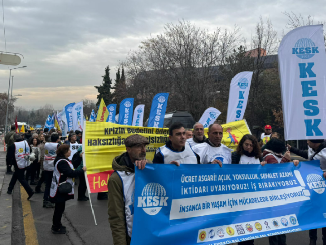 Haber Kamu çalışanları iş bıraktı: Memur maaşı acilen 79 bin TL'ye çıkartılmalıdır KESK üyeleri, memur maaşlarına yapılan zam oranını protesto etmek için yurt genelinde iş bırakma eylemi yaptı KESK'ten TÜİK önünde enflasyon protestosu KESK'ten "Geçinemiyoruz" mitingi