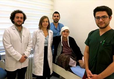 Kafatasının açılmasının ardından uyandırılan Dagmar Turner keman çalarken cerrahlar da kötü huylu beyin tümörünü aldı