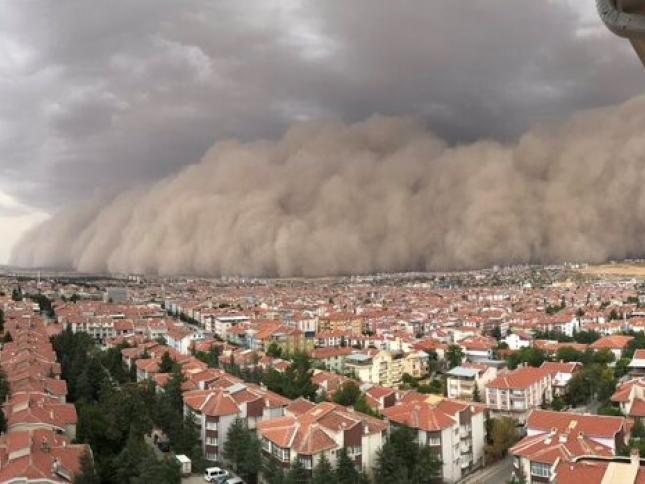 Haber Ankara Polatlı'da çölleri aratmayan bir kum fırtınası yaşandı, ilçe kısa süreliğine karanlığa gömüldü