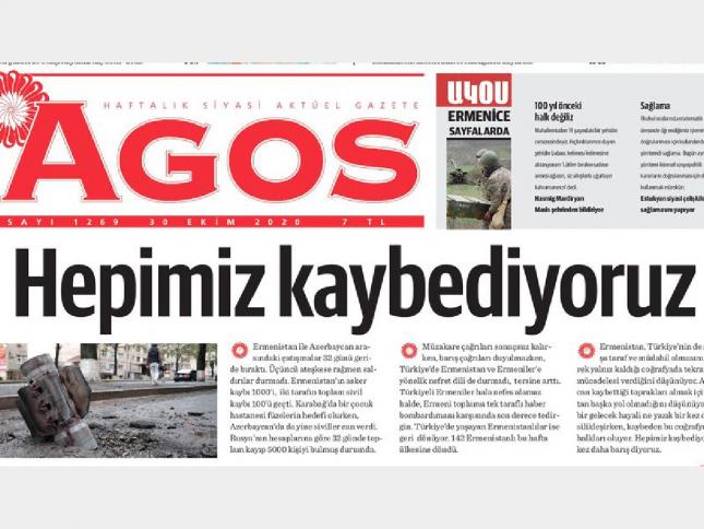 Haber Agos: Ermeni toplumu tek taraflı haber bombardımanı karşısında son derece tedirgin Agos gazetesinde yayımlanan başyazıda 142 Ermenistanlı’nın bu hafta ülkesine döndüğü bilgisi paylaşıldı Agos Gazetesi Genel Yayın Yönetmeni Danzikyan: Türkiye'de yaşayan Ermenistanlılar'dan 142 kişi bugün ülkesine döndü