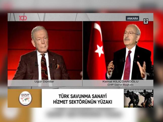 Haber Kılıçdaroğlu TV100'ün yöneticisiyle görüştü, işten atılan 3 çalışanın geri alınmasını istedi CHP lideri Kılıçdaroğlu "O üç arkadaşımızın böyle bir hatadan dolayı işsiz kalmasına benim yüreğim elvermez" dedi "TV100'de SADAT reklamı" tartışması... Kılıçdaroğlu: O az kalmış aklınızı alırım SADAT Başkanı Tanrıverdi: Bin 500 liralık reklam, iyi PR çalışmasına döndü Kılıçdaroğlu'nun TV100'de katıldığı programda SADAT reklamı yayınlandı... Uğur Dündar: Hiçbir bilgim, ilgim yok